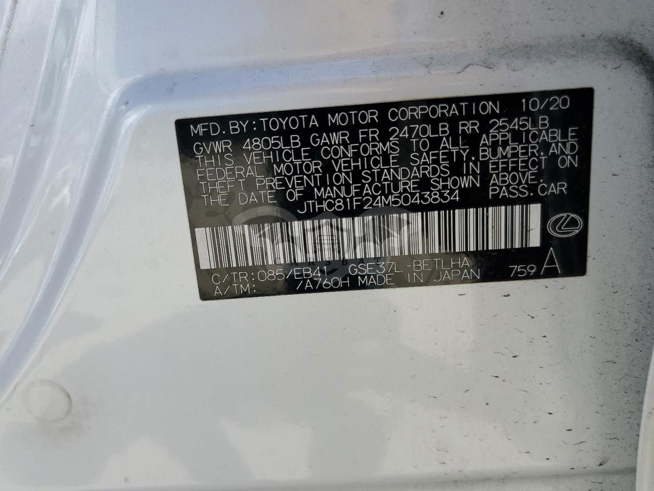 • VIN: JTHC81F24M5043834