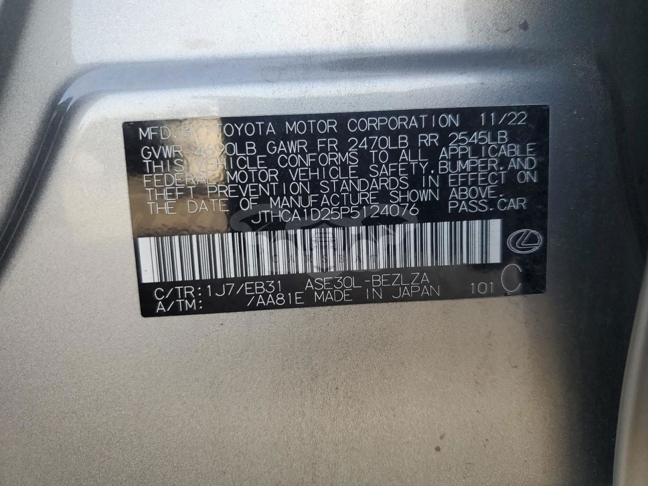 • VIN: JTHCA1D25P5124076