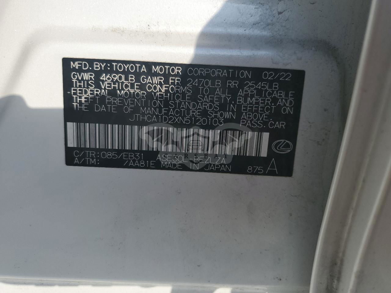 • VIN: JTHCA1D2XN5120103