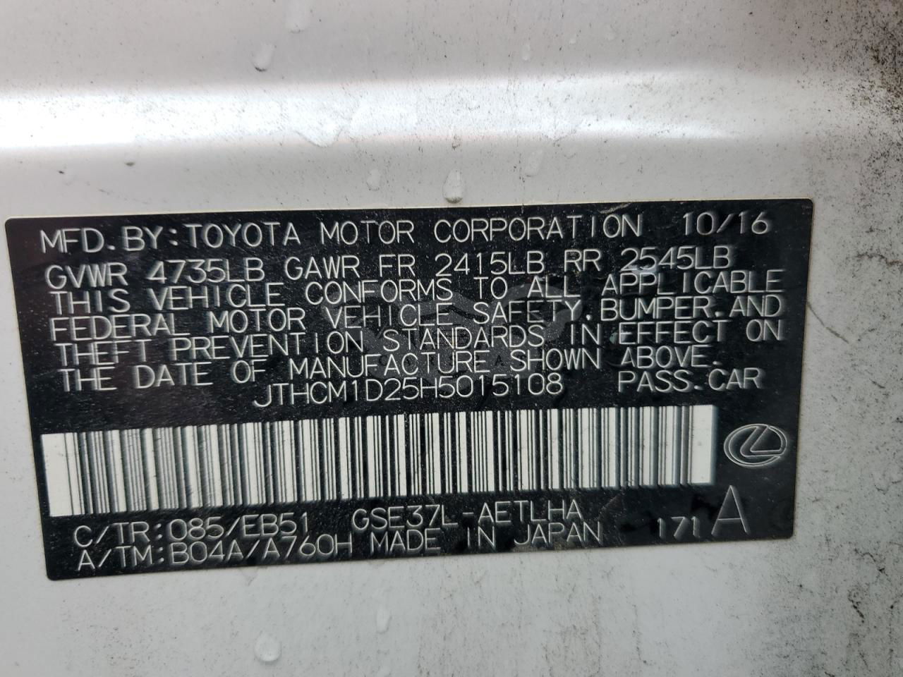 • VIN: JTHCM1D25H5015108