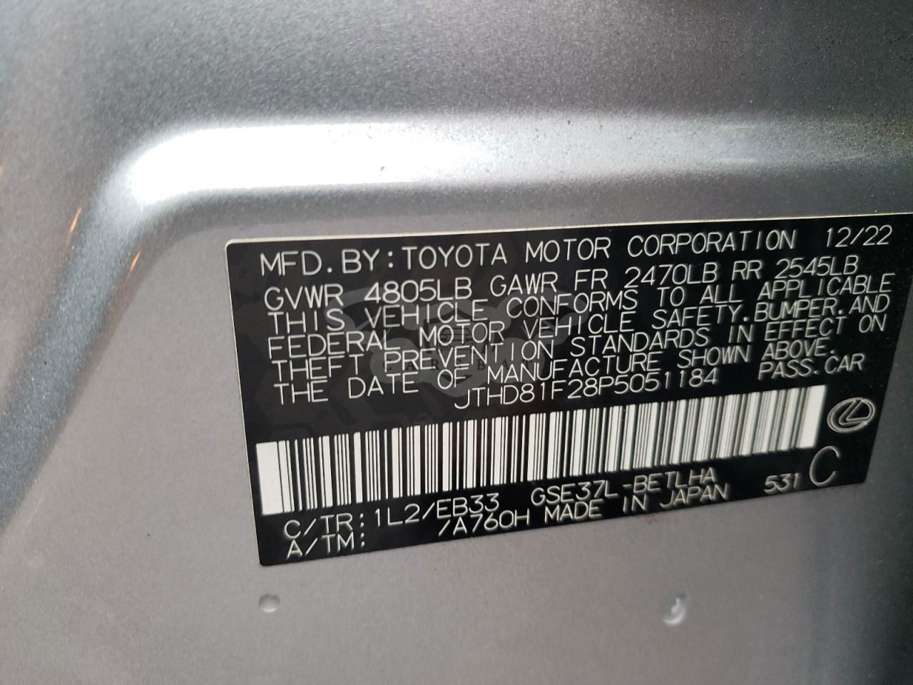 • VIN: JTHD81F28P5051184