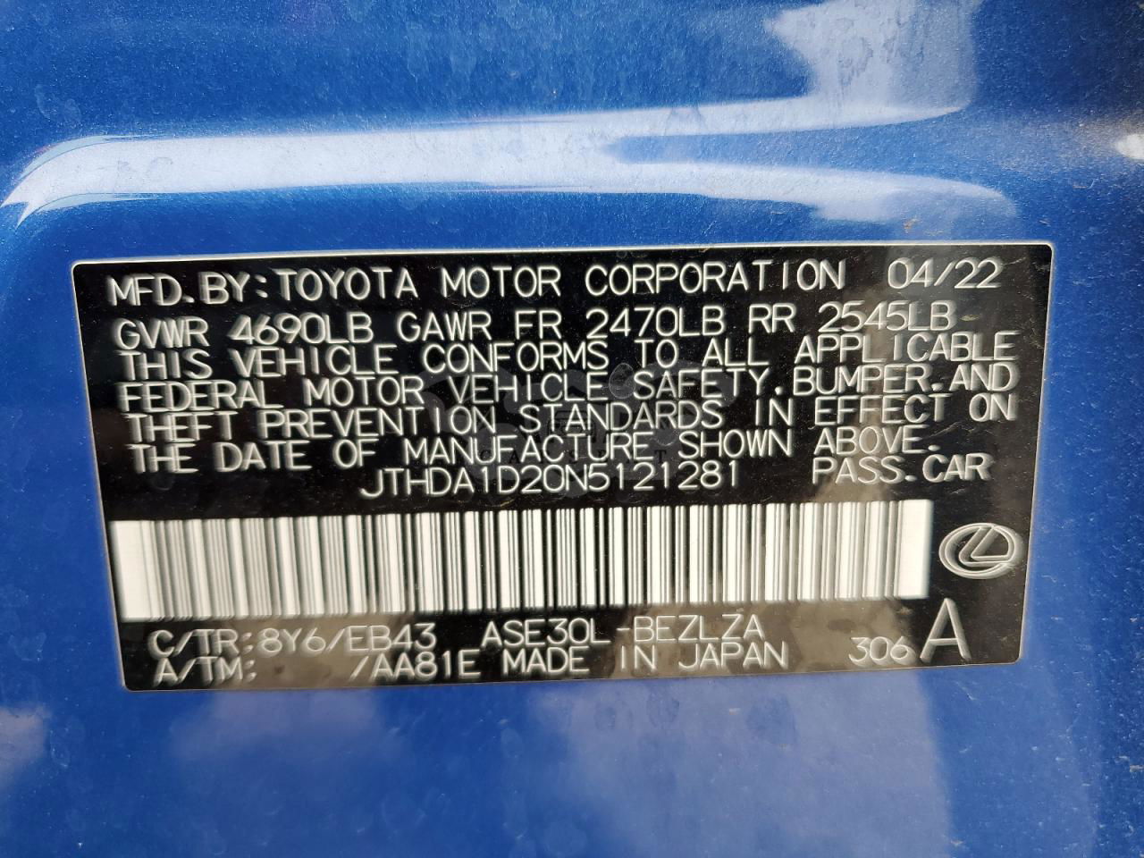 • VIN: JTHDA1D20N5121281