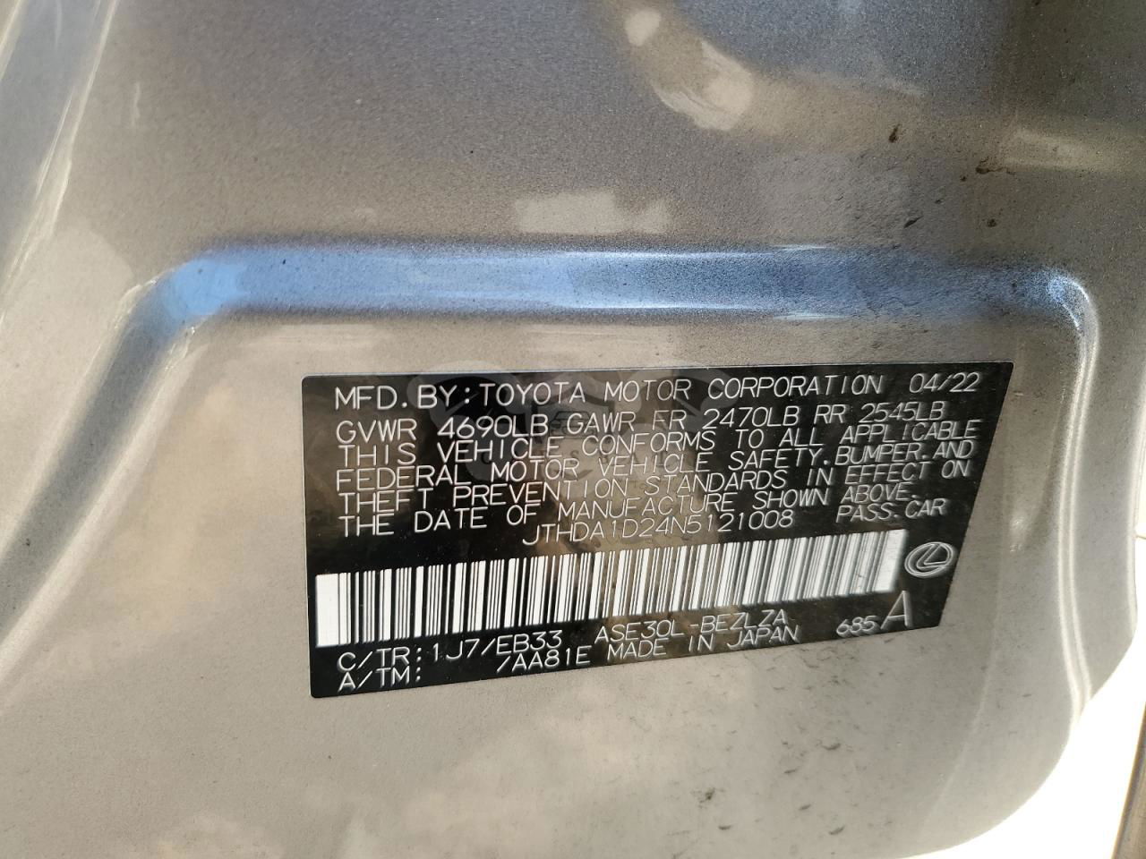 • VIN: JTHDA1D24N5121008
