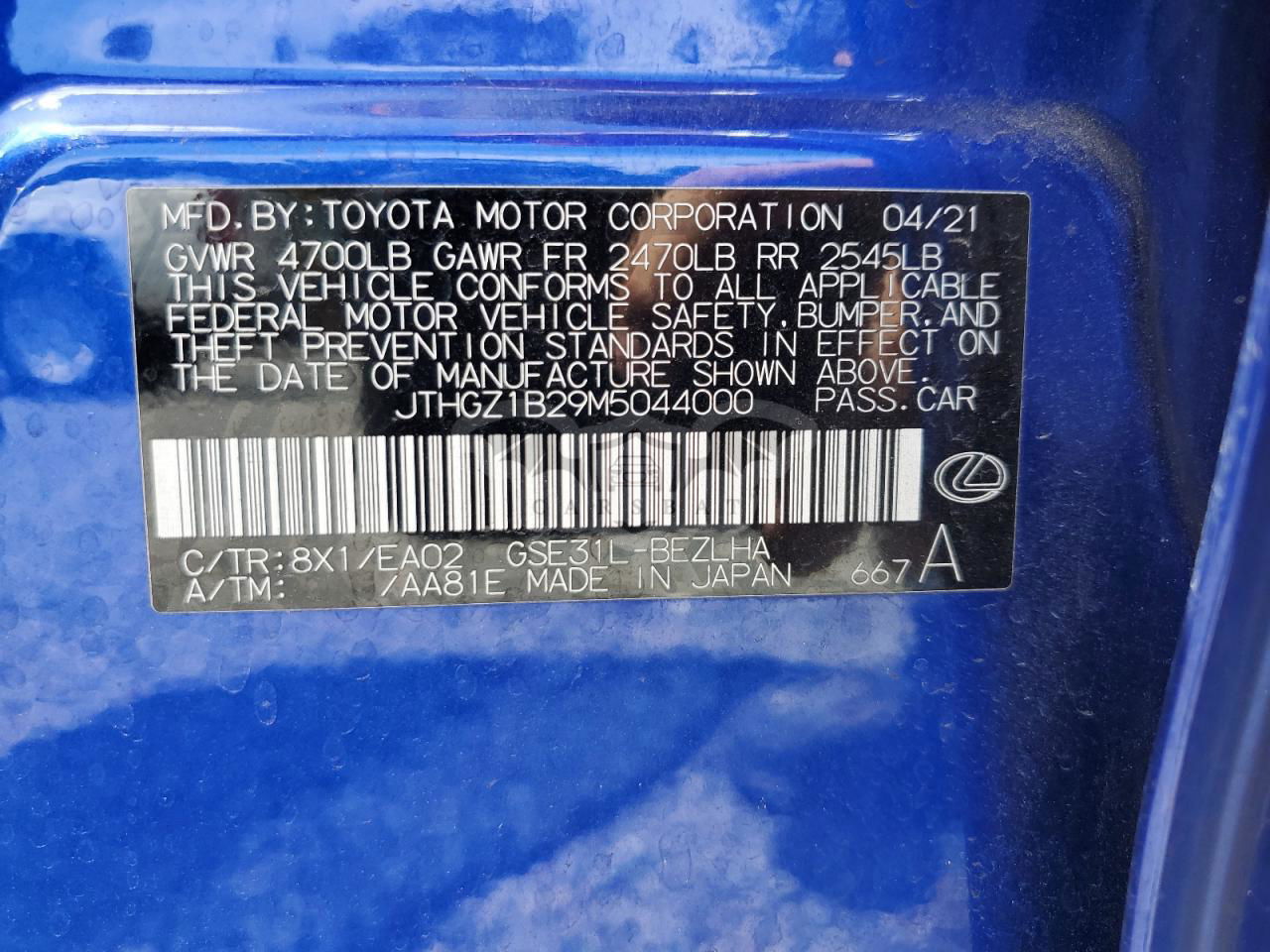 • VIN: JTHGZ1B29M5044000