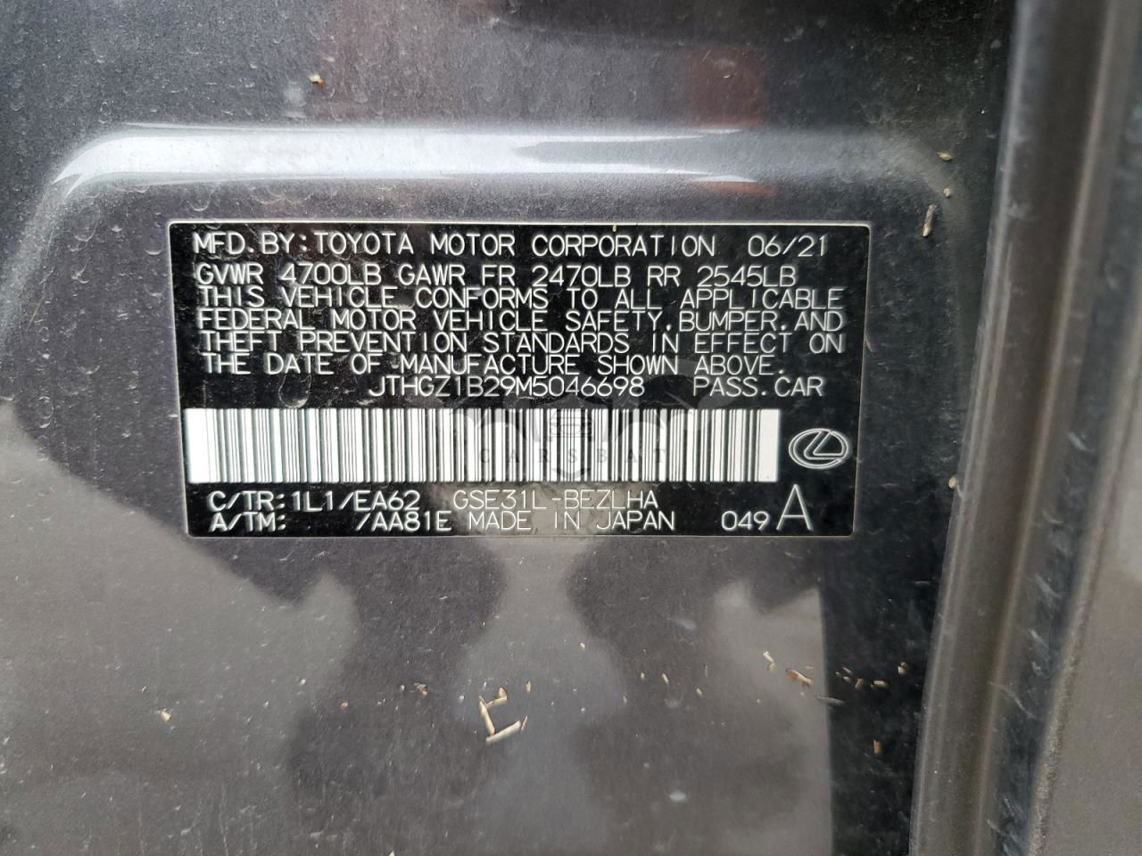• VIN: JTHGZ1B29M5046698