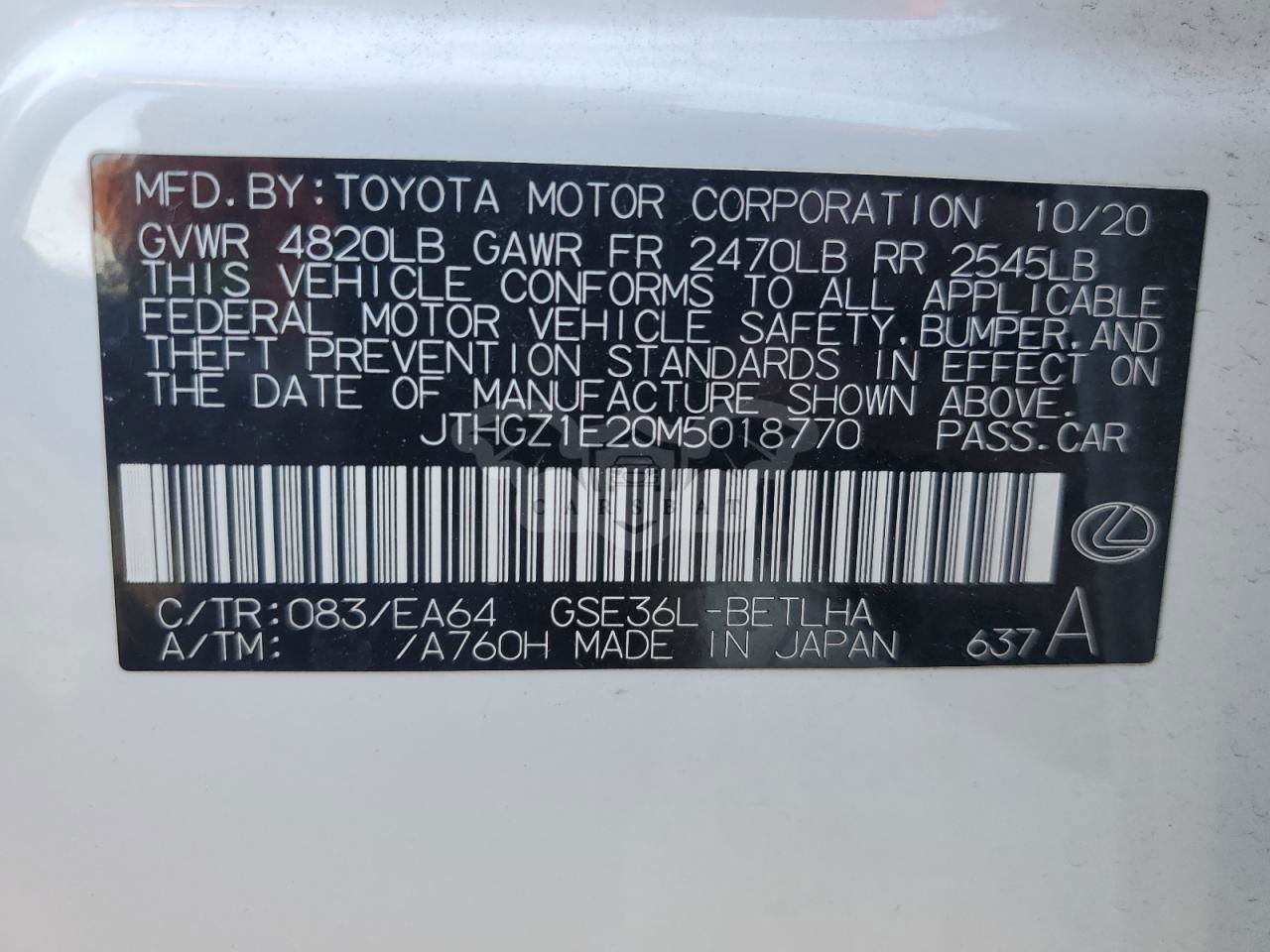 • VIN: JTHGZ1E20M5018770