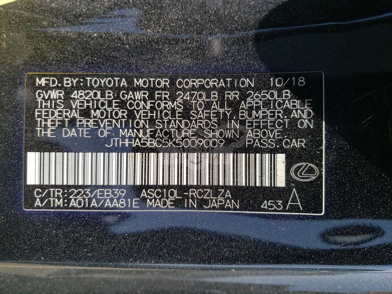 • VIN: JTHHA5BC5K5009009