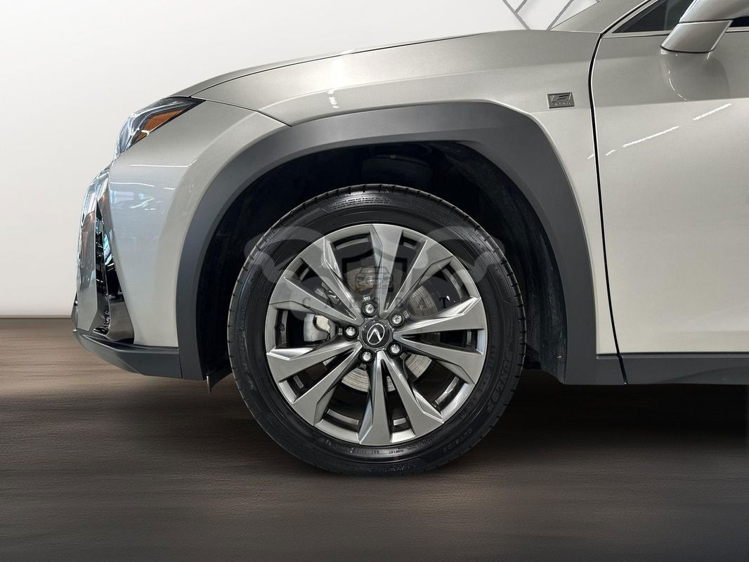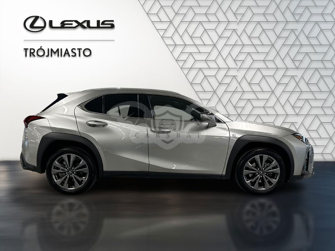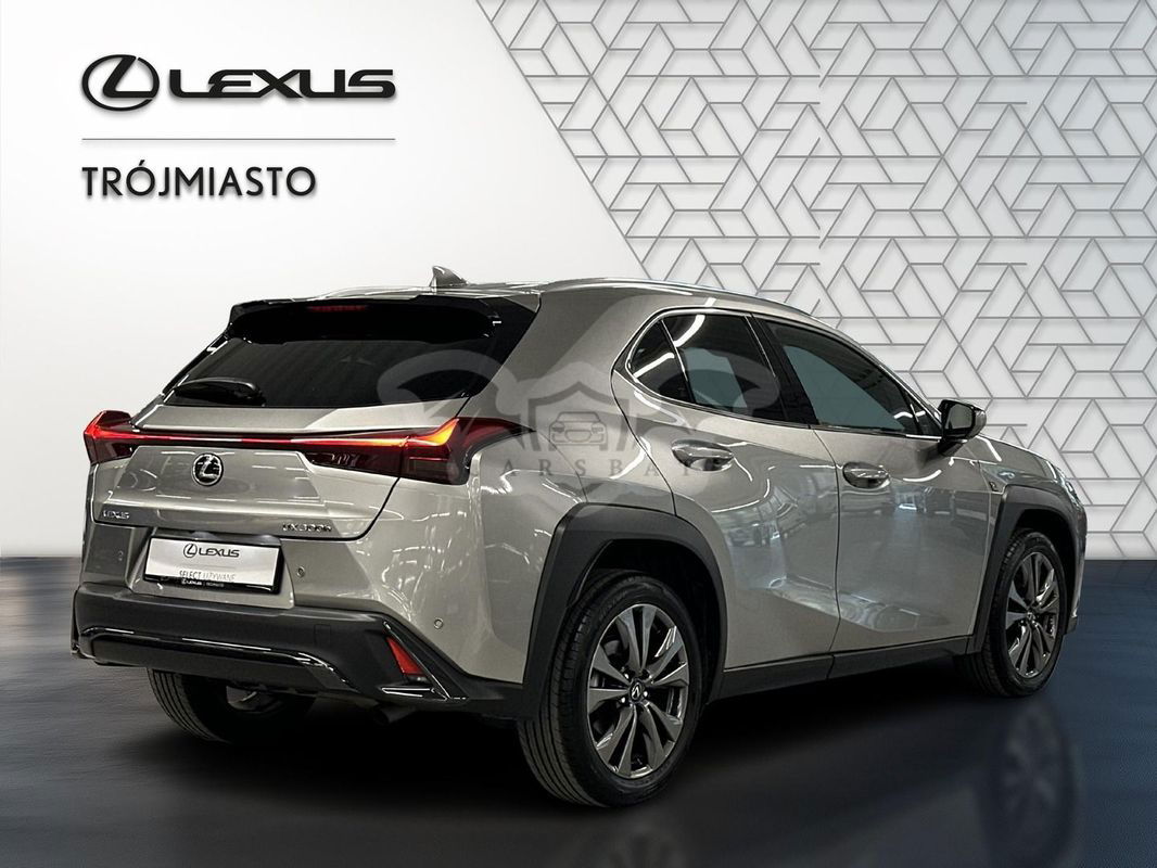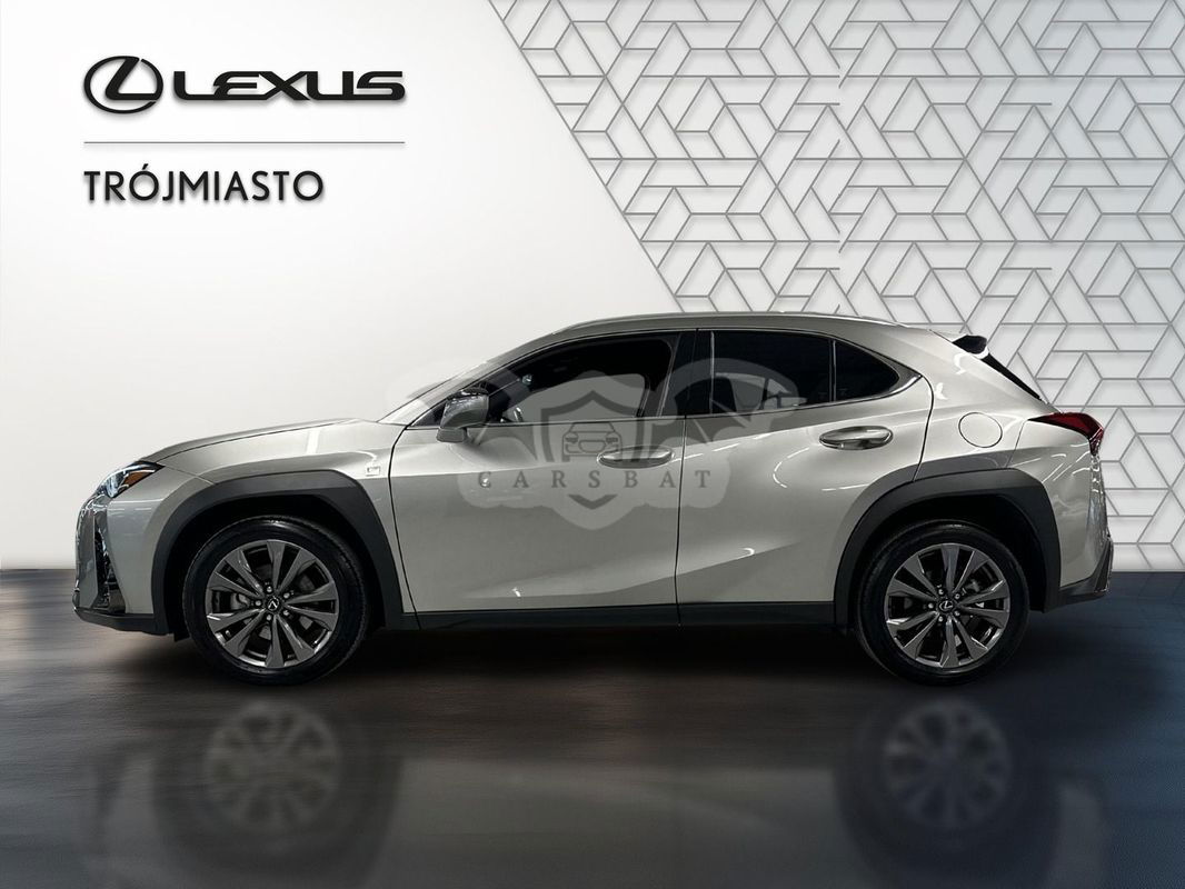 Srebrny Lexus UX 300h F Sport Design 2024 roku | Hybrydowy