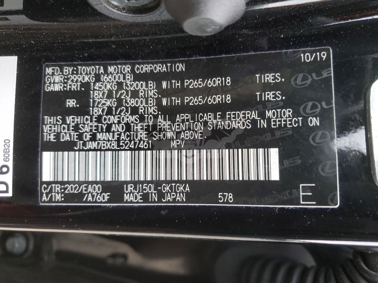 • VIN: JTJAM7BX8L5247461