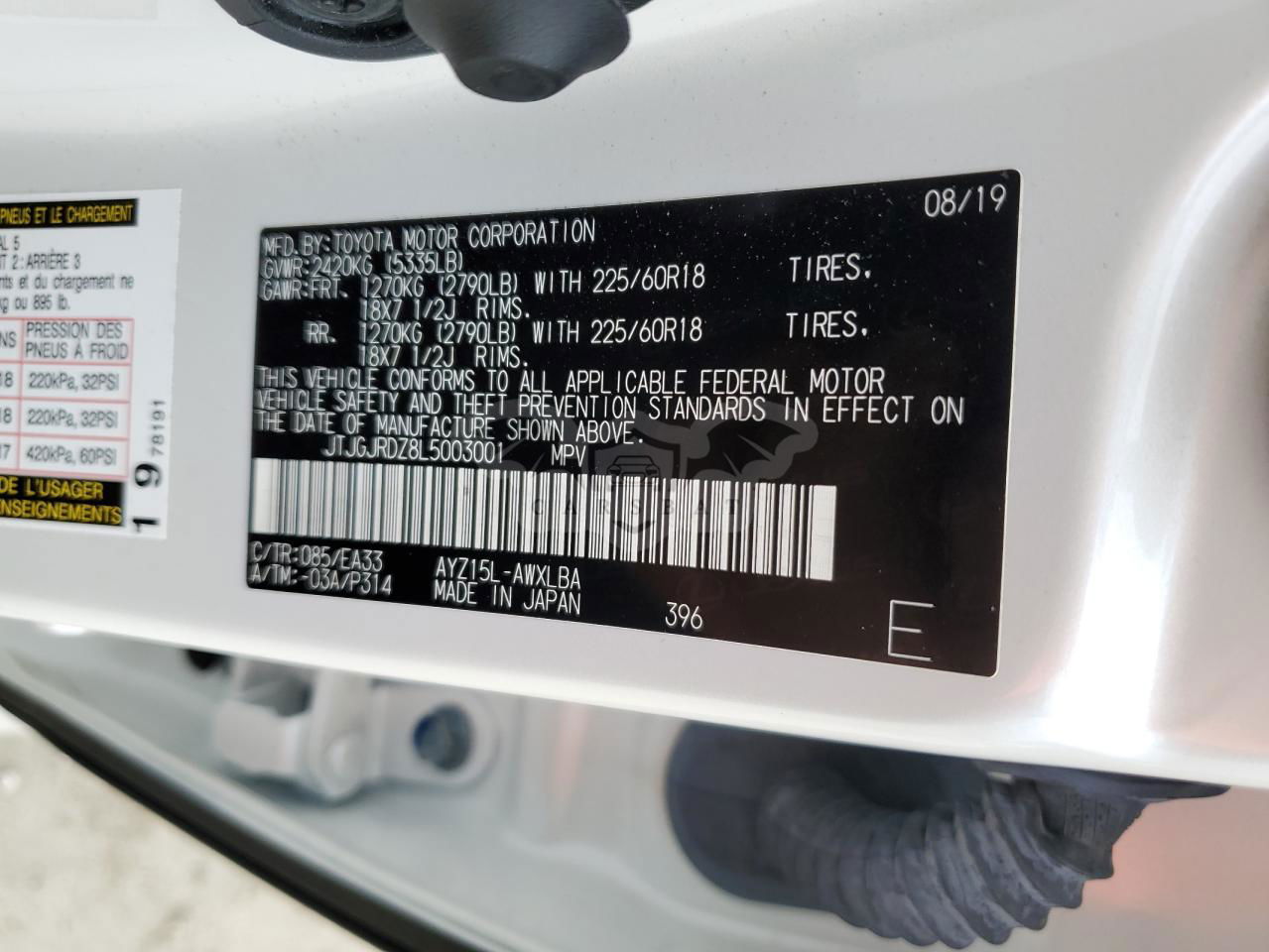 • VIN: JTJGJRDZ8L5003001