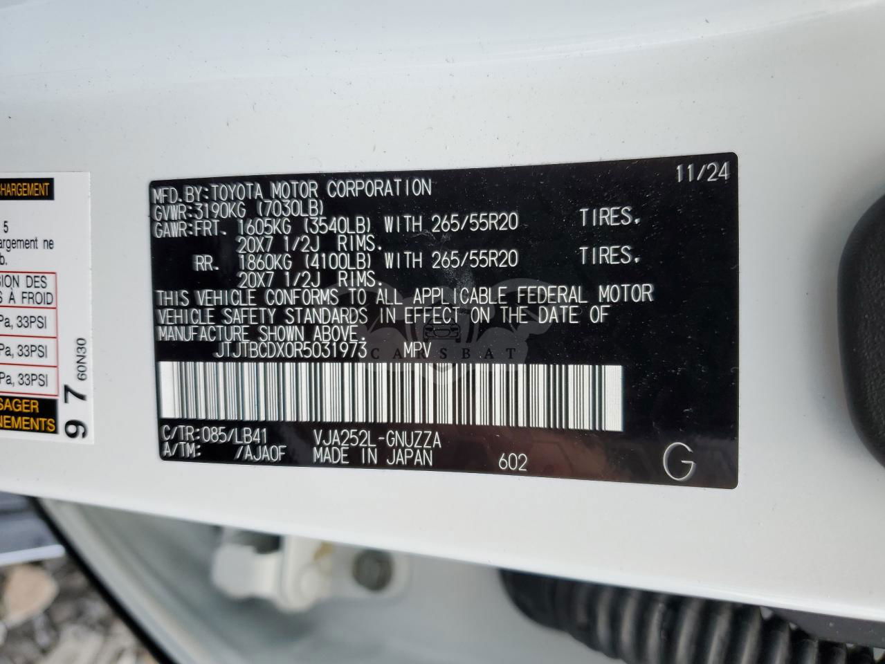 • VIN: JTJTBCDX0R5031973