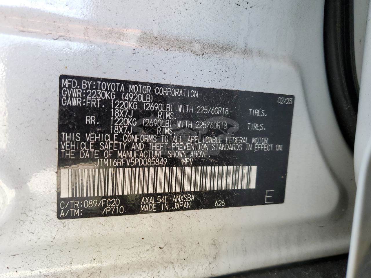 • VIN: JTM16RFV5PD085849