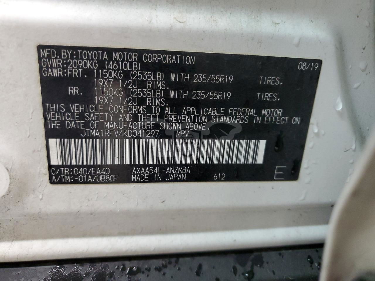 • VIN: JTMA1RFV4KD041297