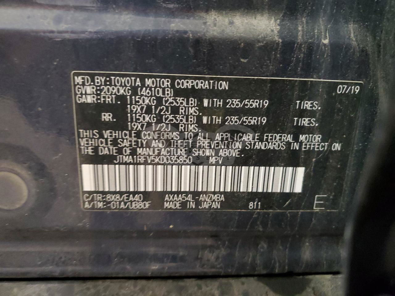 • VIN: JTMA1RFV5KD035850