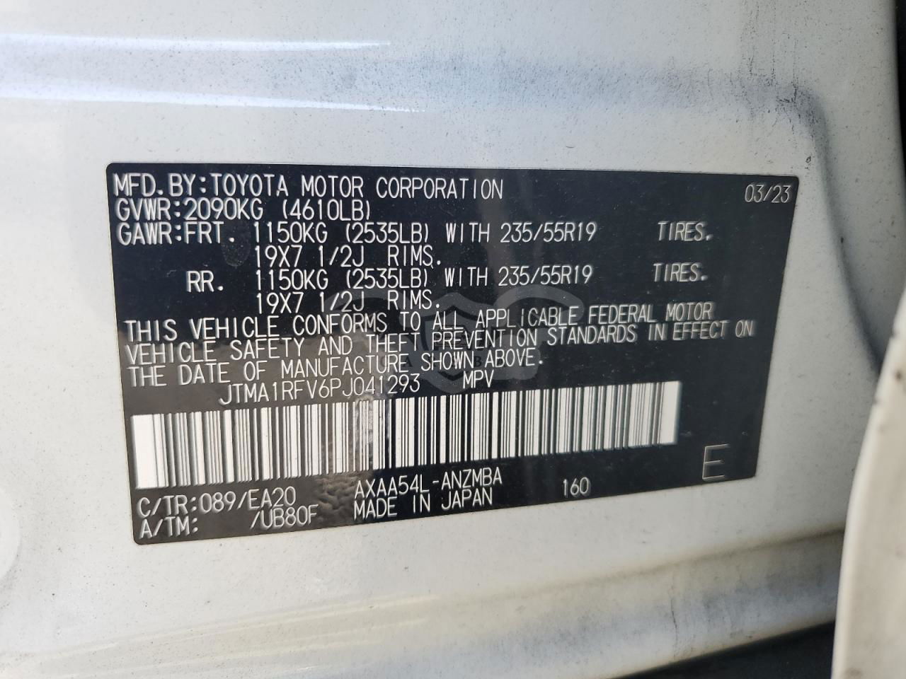 • VIN: JTMA1RFV6PJ041293
