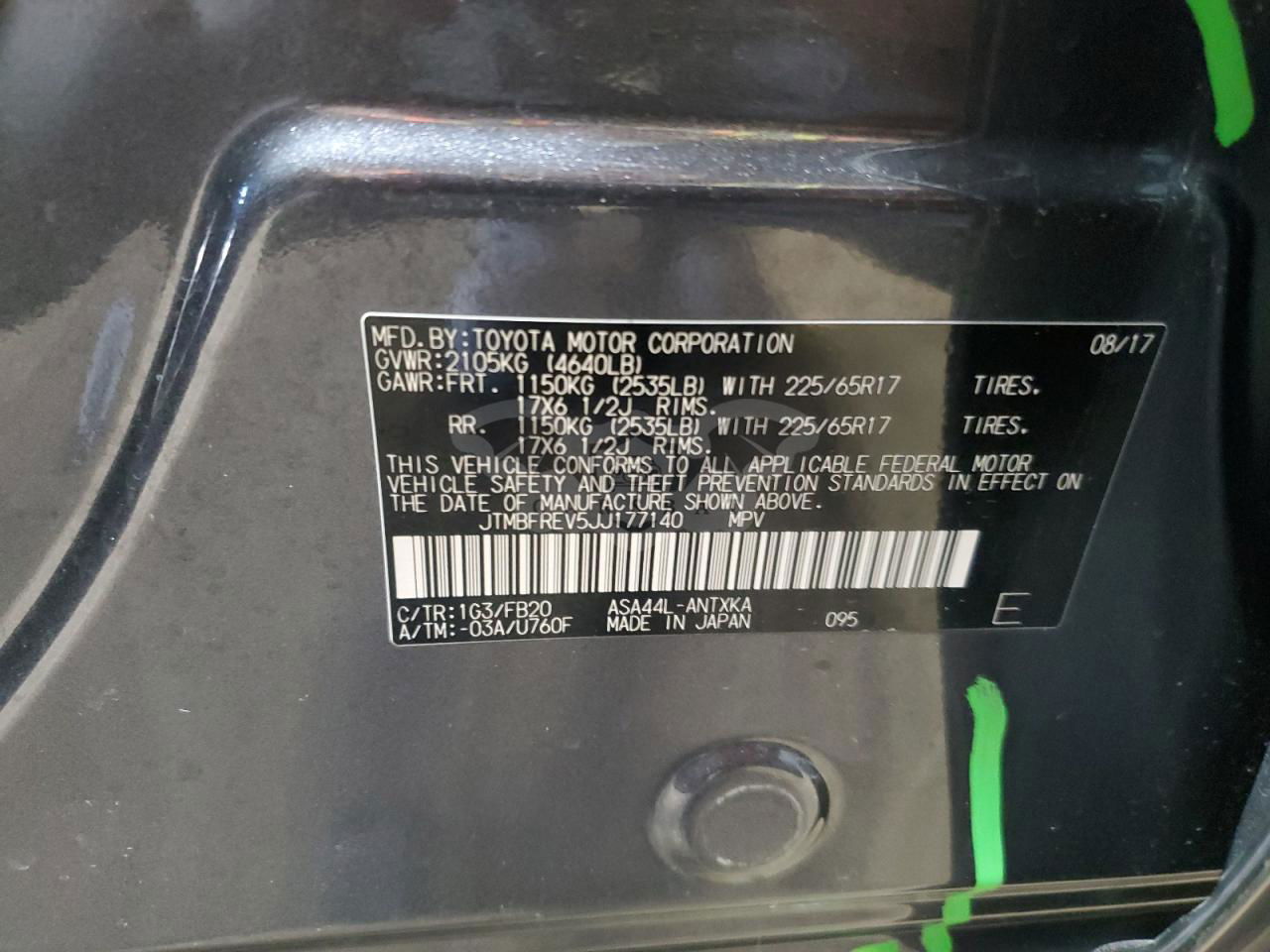 • VIN: JTMBFREV5JJ177140