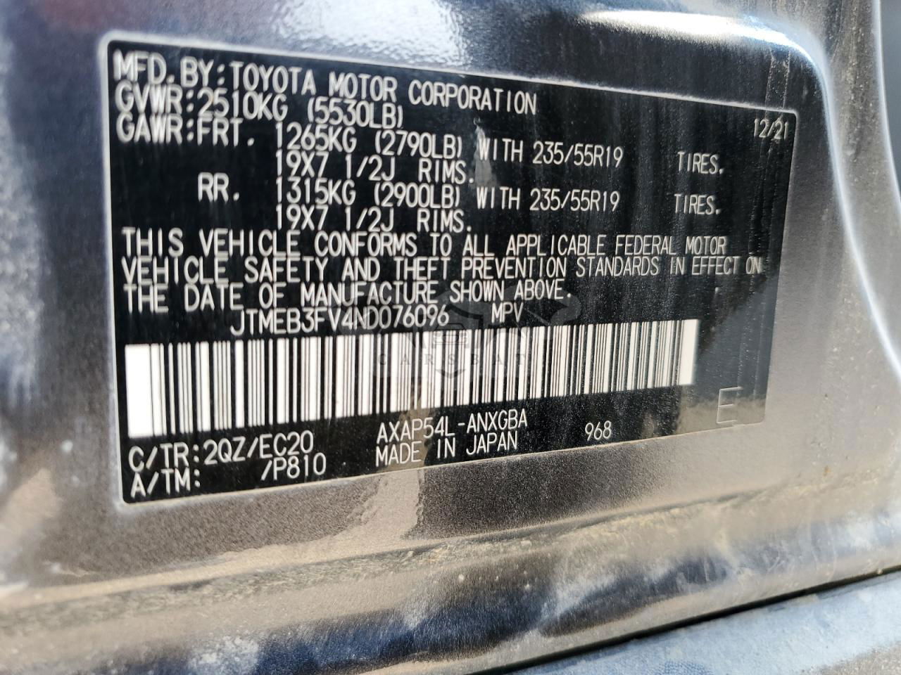 • VIN: JTMEB3FV4ND076096