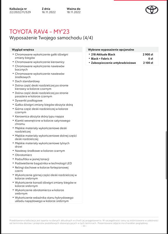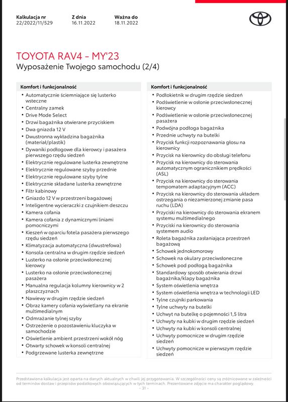 Średnia cena Toyota Rav4 2023 z przebiegiem 50000-75000 km