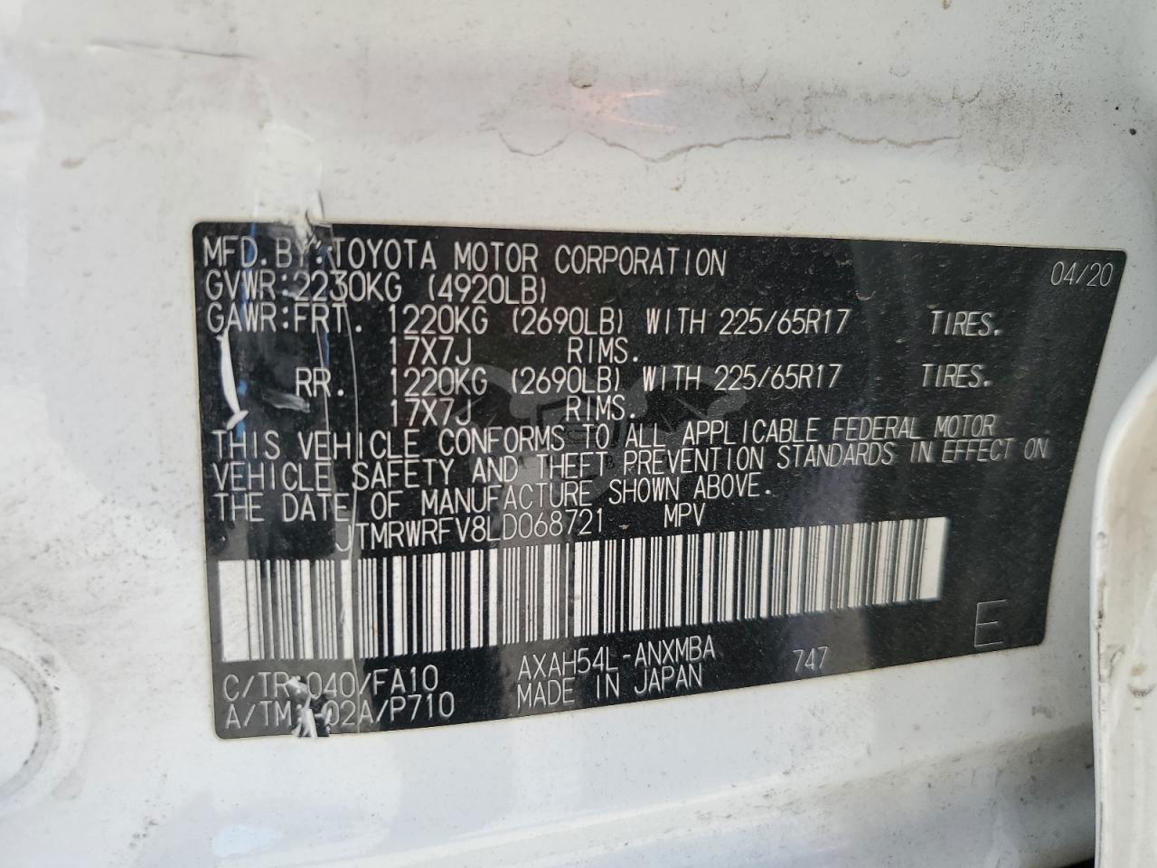 • VIN: JTMRWRFV8LD068721