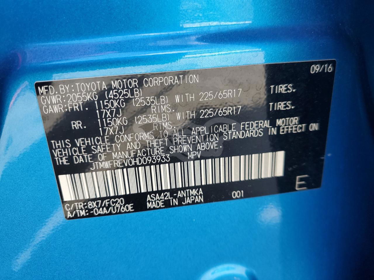 • VIN: JTMWFREV0HD093933