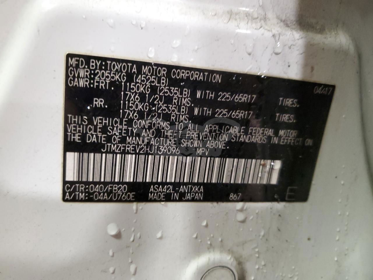 • VIN: JTMZFREV2HJ139096