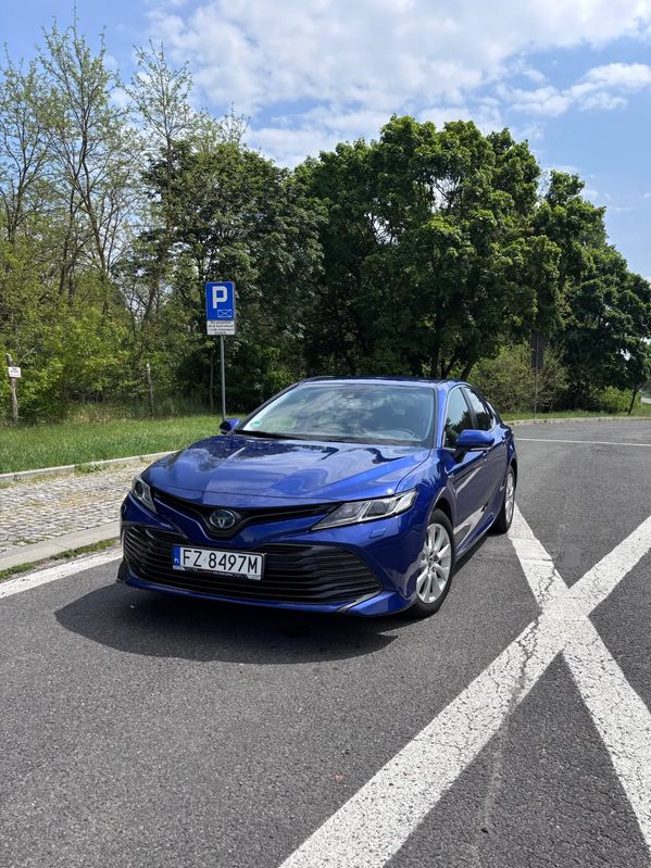 Niebieski Toyota Camry 2019 roku | Hybrydowy