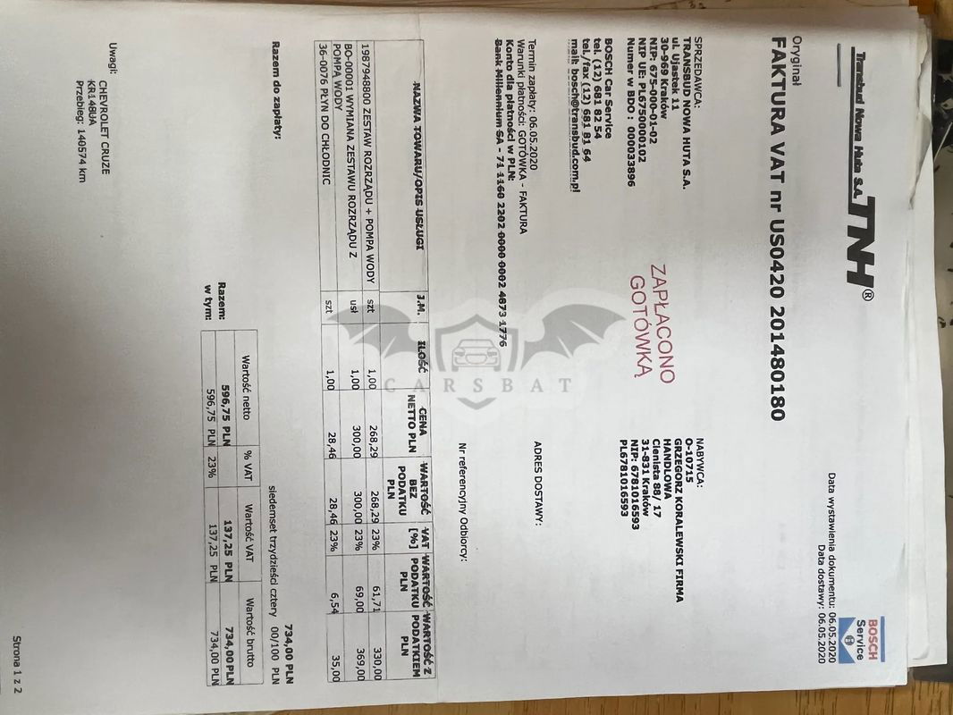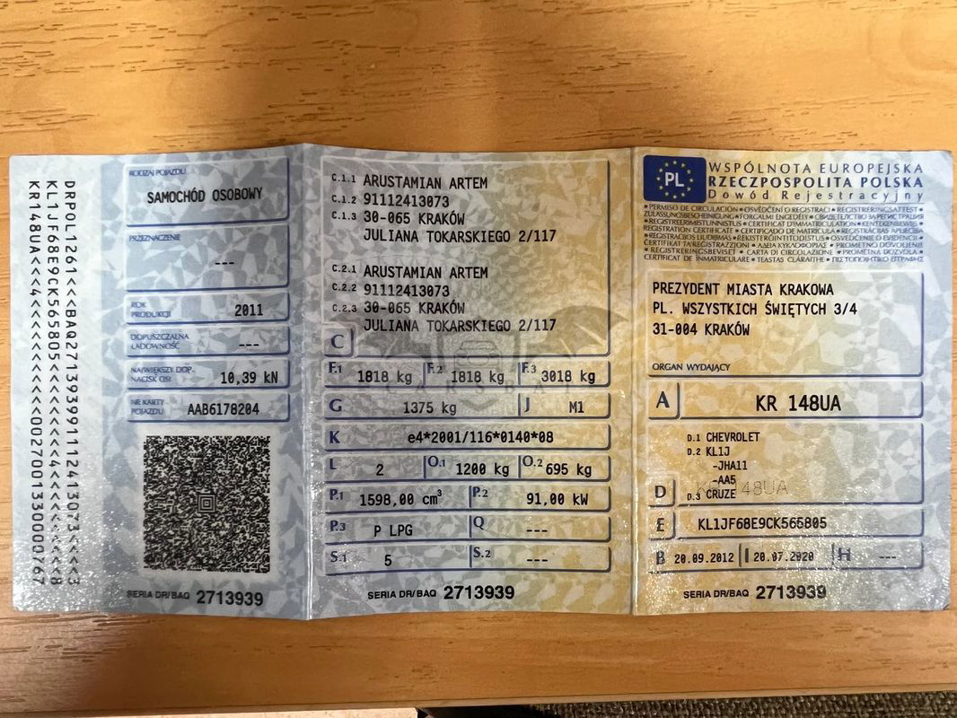 Sprzedaję Chevrolet Cruze 2011 roku produkcji, ponieważ kupiłem nowy samochód. Pierwsza rejestracja w 2012. Jestem drugim właścicielem, kupiłem go w 2020 roku i przejechałem prawie 100 tys. km. Używałem go do jazdy autostradami, jest to bardzo wygodny i ekonomiczny samochód. Zużywa ok. 9-10 litrów LPG na 100 km. Wszystkie usterki przedstawiono na zdjęciach. Przegląd LPG jest ważny do lipca 2024 roku, przegląd techniczny do maja 2024, ubiespieczenie do września 2024. Samochód wyposażony dodatkowo rejestratorem jazdy w lusterku FULL HD z kamerą cofania oraz bluetooth podłączony do aux. Założony nowy akumulator oraz wymienione wszystkie filtry i olej. Na benzynie samochód jeździ bardzo dobrze, natomiast przy przełączeniu na gaz zaczyna trochę tracić moc, przy jeździe po autostradzie tego nie zauważysz, tylko podczas przyspieszania. Czasem pojawia check engine (P0296), ale to nie wpływa na jazdę, miałem to od pierwszego dnia, mechanik powiedział że to jest zawsze na tym silniku po założeniu LPG. Na razie założono opony zimowe, w bardzo dobrym stanie. Mam dodatkowo opony letnie używane przez jeden sezon (w razie zainteresowania sprzedam za 300 zł). Samochód znajduję się w Krakowie (Krowodrza).