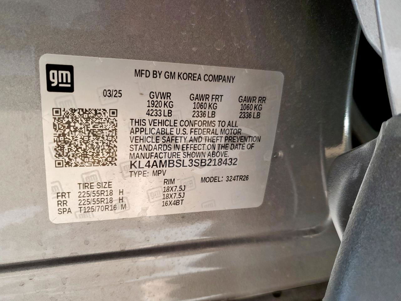 • VIN: KL4AMBSL3SB218432