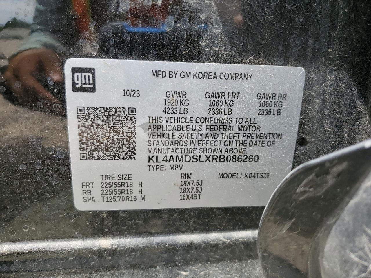 • VIN: KL4AMDSLXRB086260