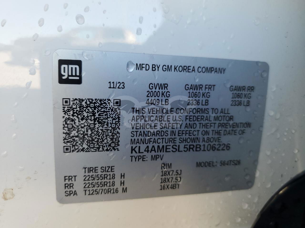 • VIN: KL4AMESL5RB106226