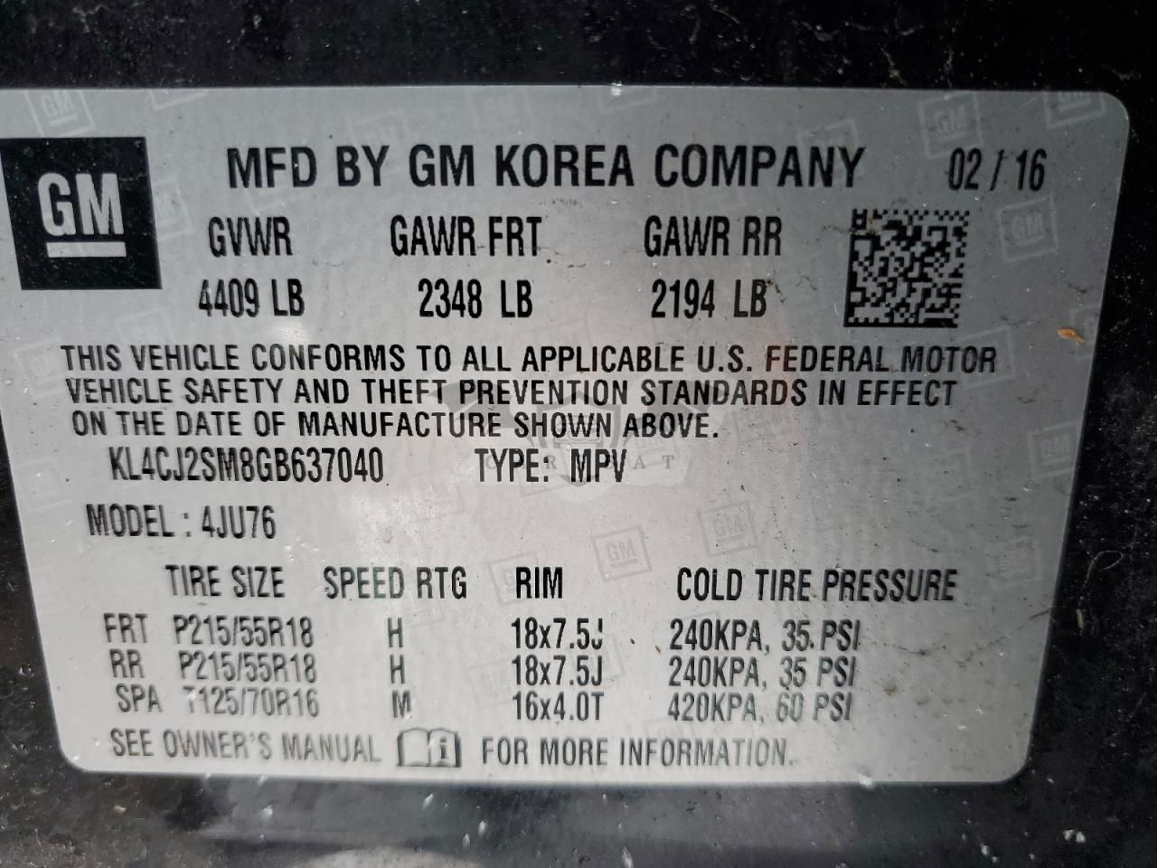 • VIN: KL4CJ2SM8GB637040