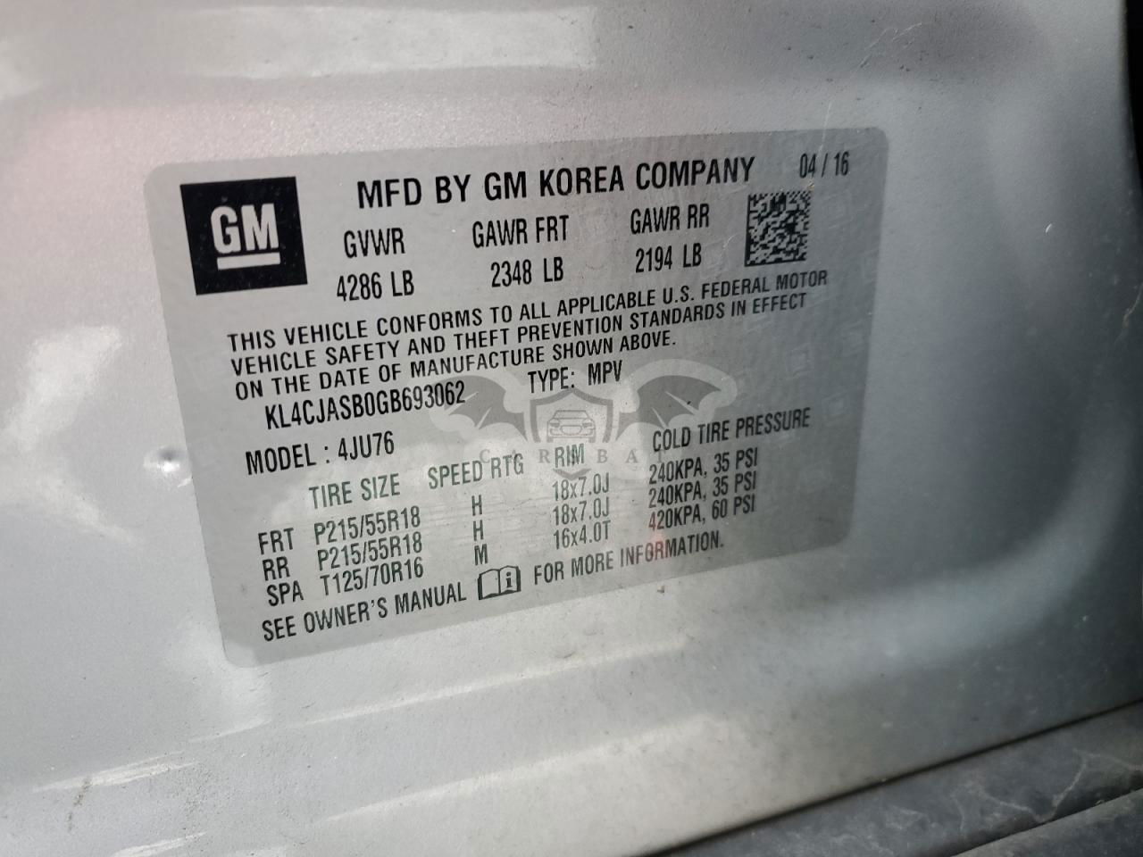 • VIN: KL4CJASB0GB693062