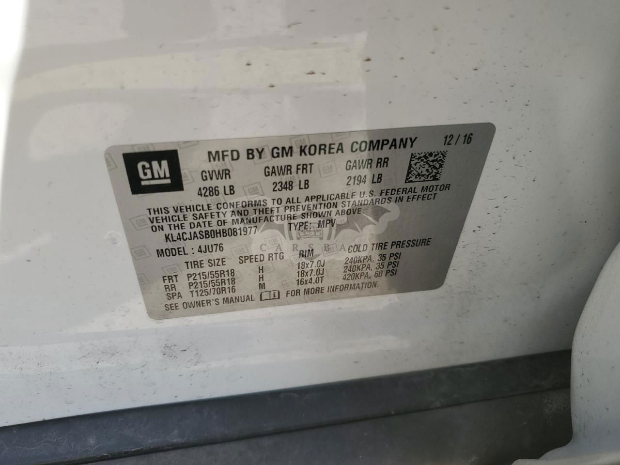 • VIN: KL4CJASB0HB081977