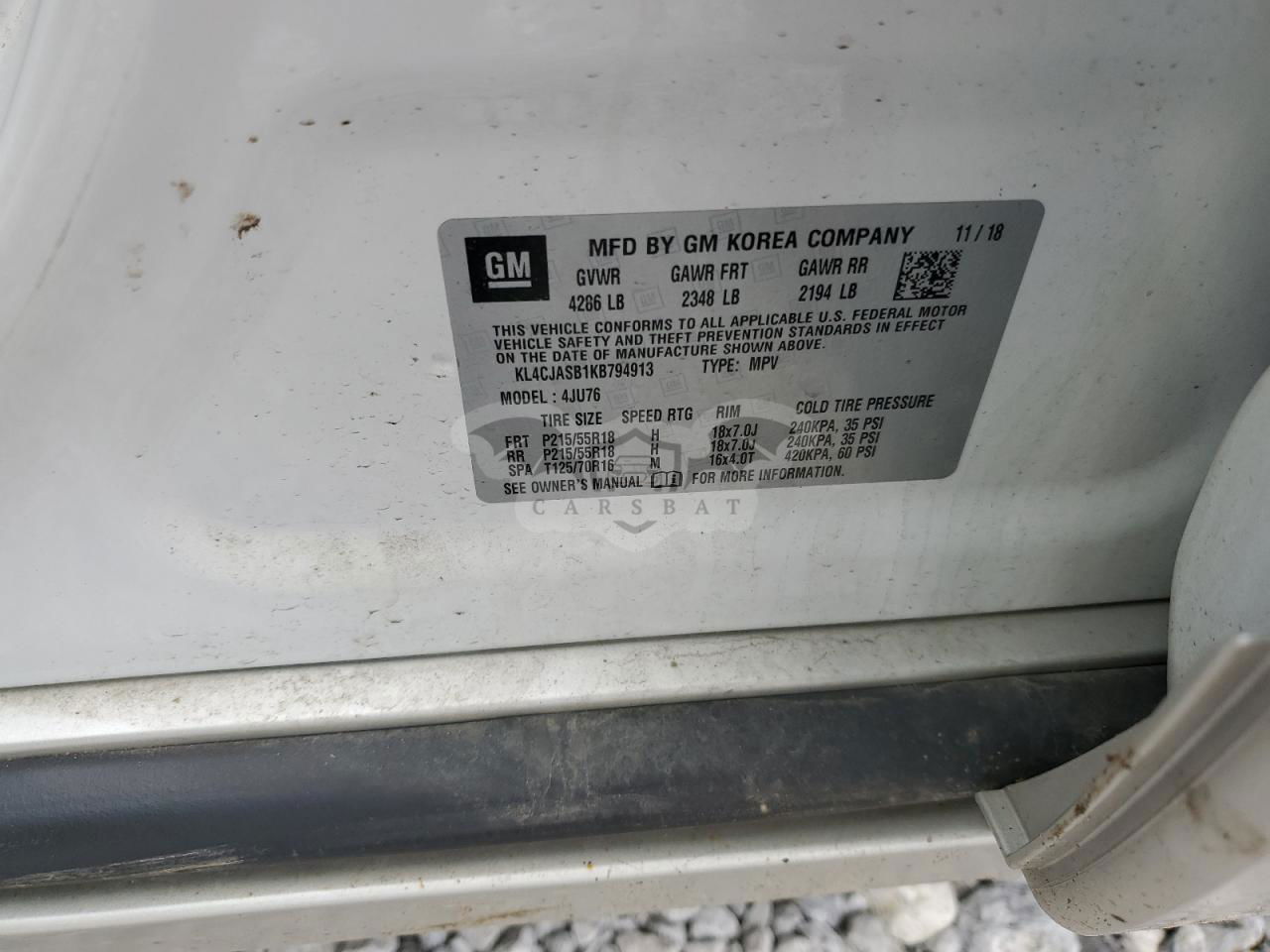 • VIN: KL4CJASB1KB794913