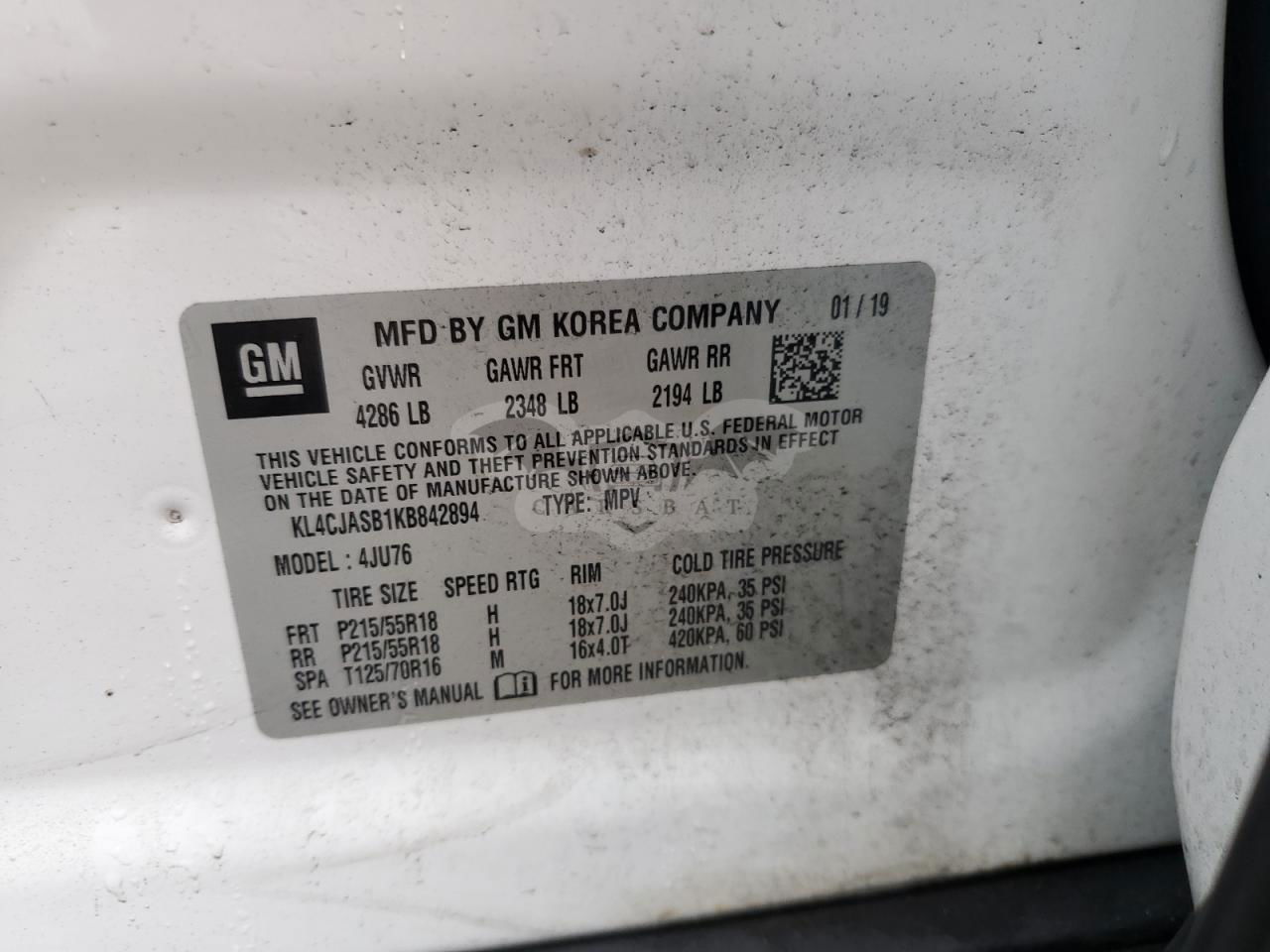 • VIN: KL4CJASB1KB842894