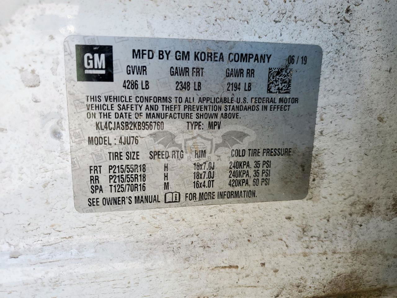 • VIN: KL4CJASB2KB956760