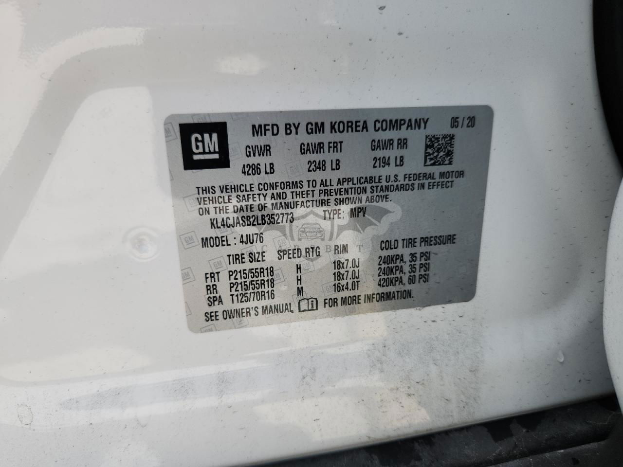 • VIN: KL4CJASB2LB352773