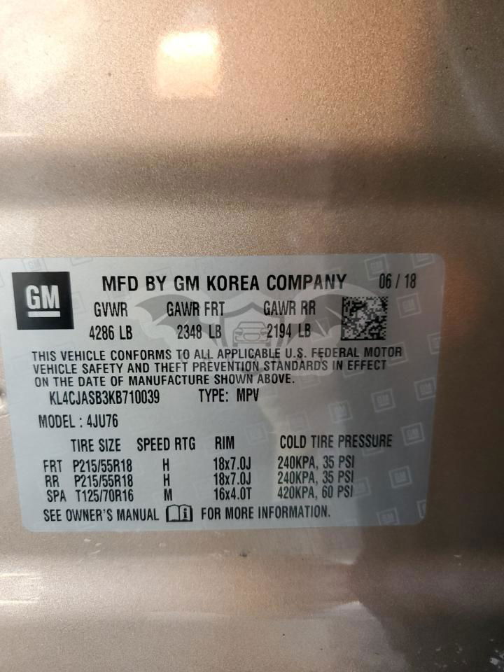 • VIN: KL4CJASB3KB710039