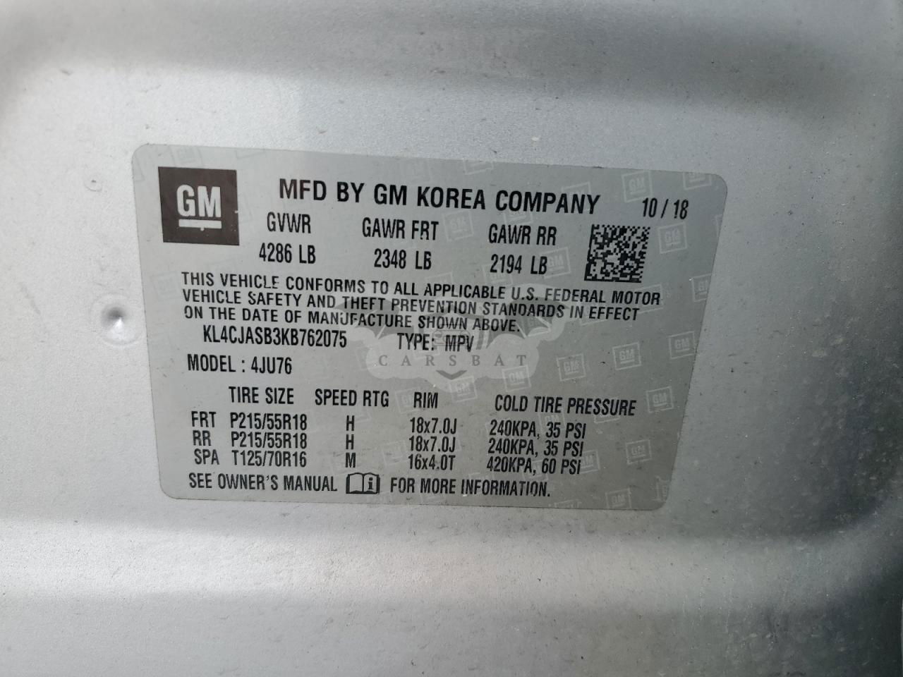 • VIN: KL4CJASB3KB762075
