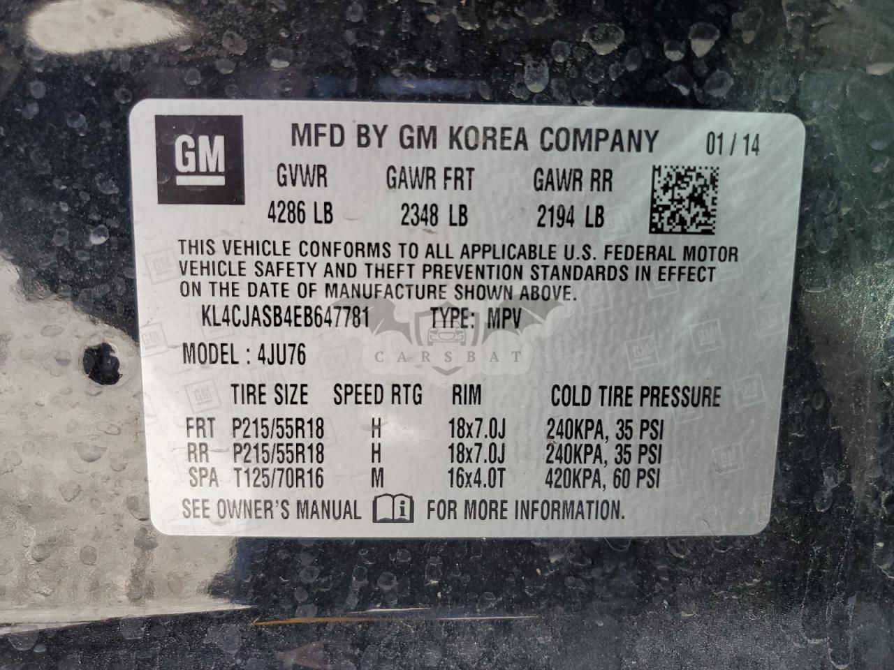 • VIN: KL4CJASB4EB647781