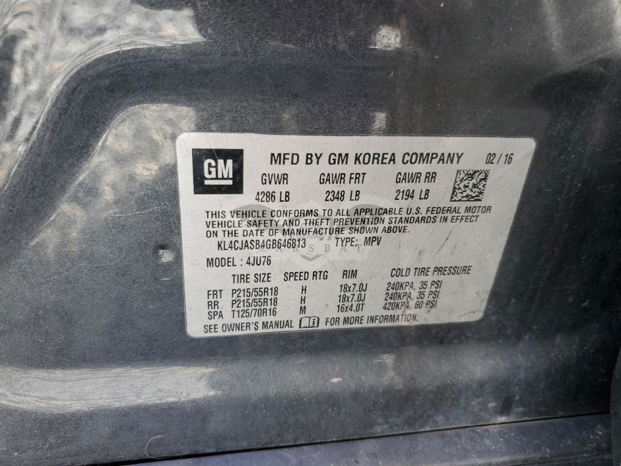 • VIN: KL4CJASB4GB646813