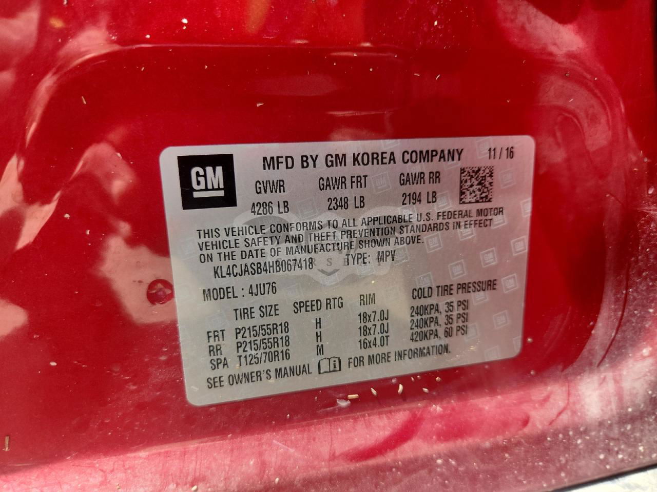 • VIN: KL4CJASB4HB067418