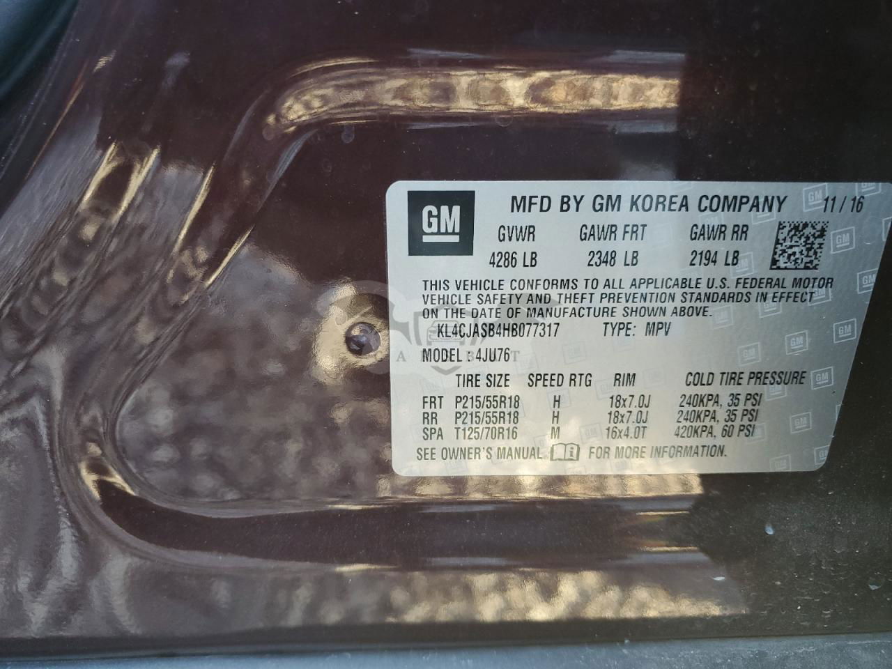 • VIN: KL4CJASB4HB077317
