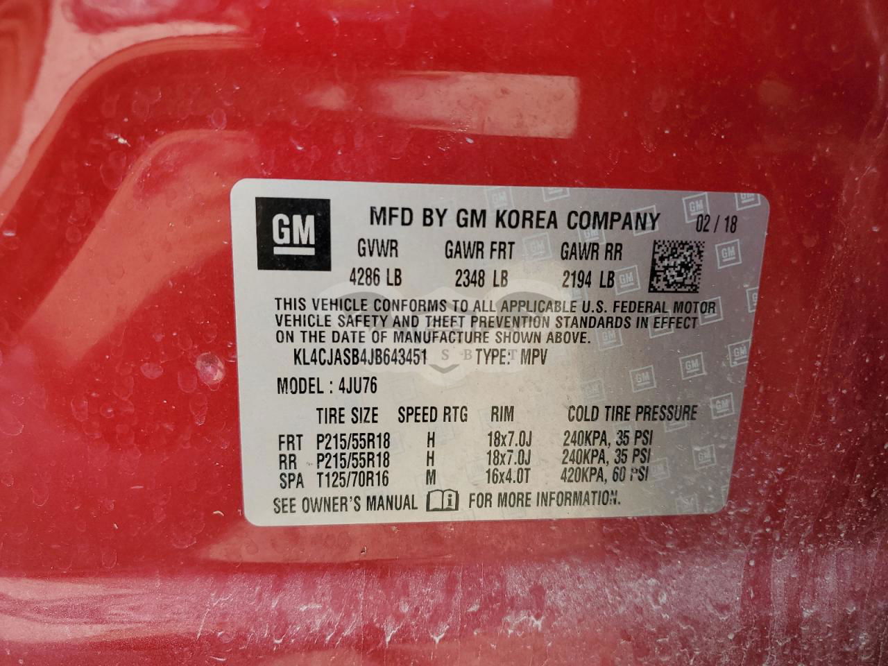 • VIN: KL4CJASB4JB643451
