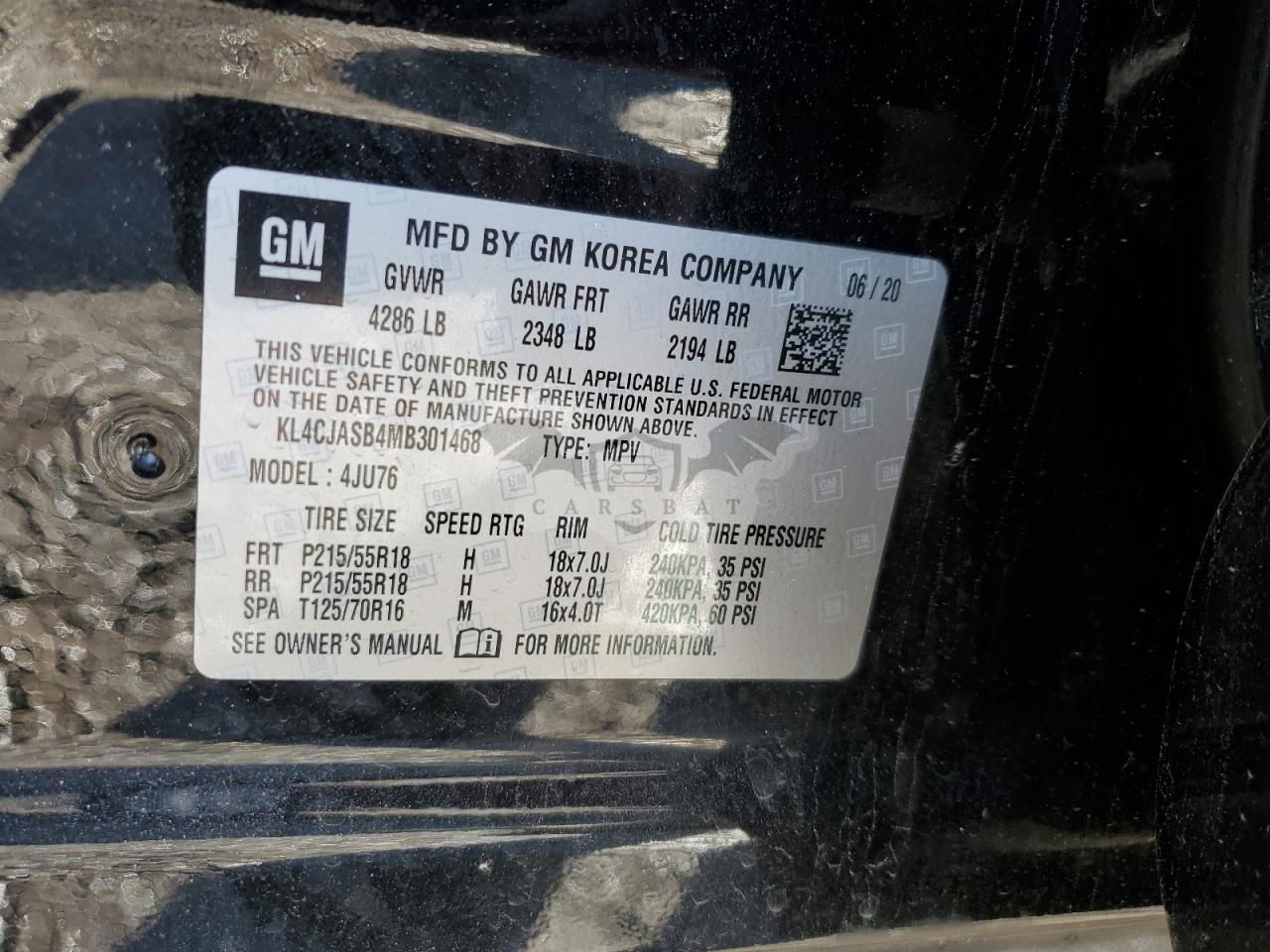 • VIN: KL4CJASB4MB301468