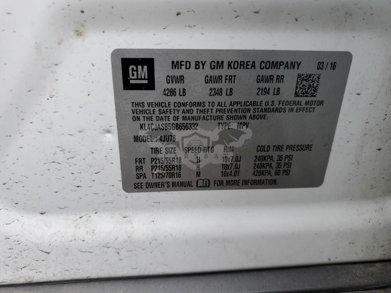 • VIN: KL4CJASB5GB656332