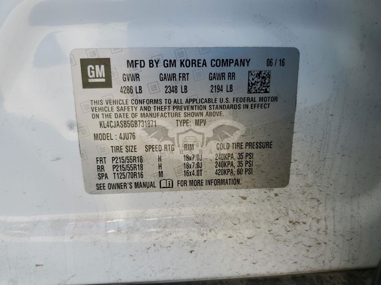 • VIN: KL4CJASB5GB731871