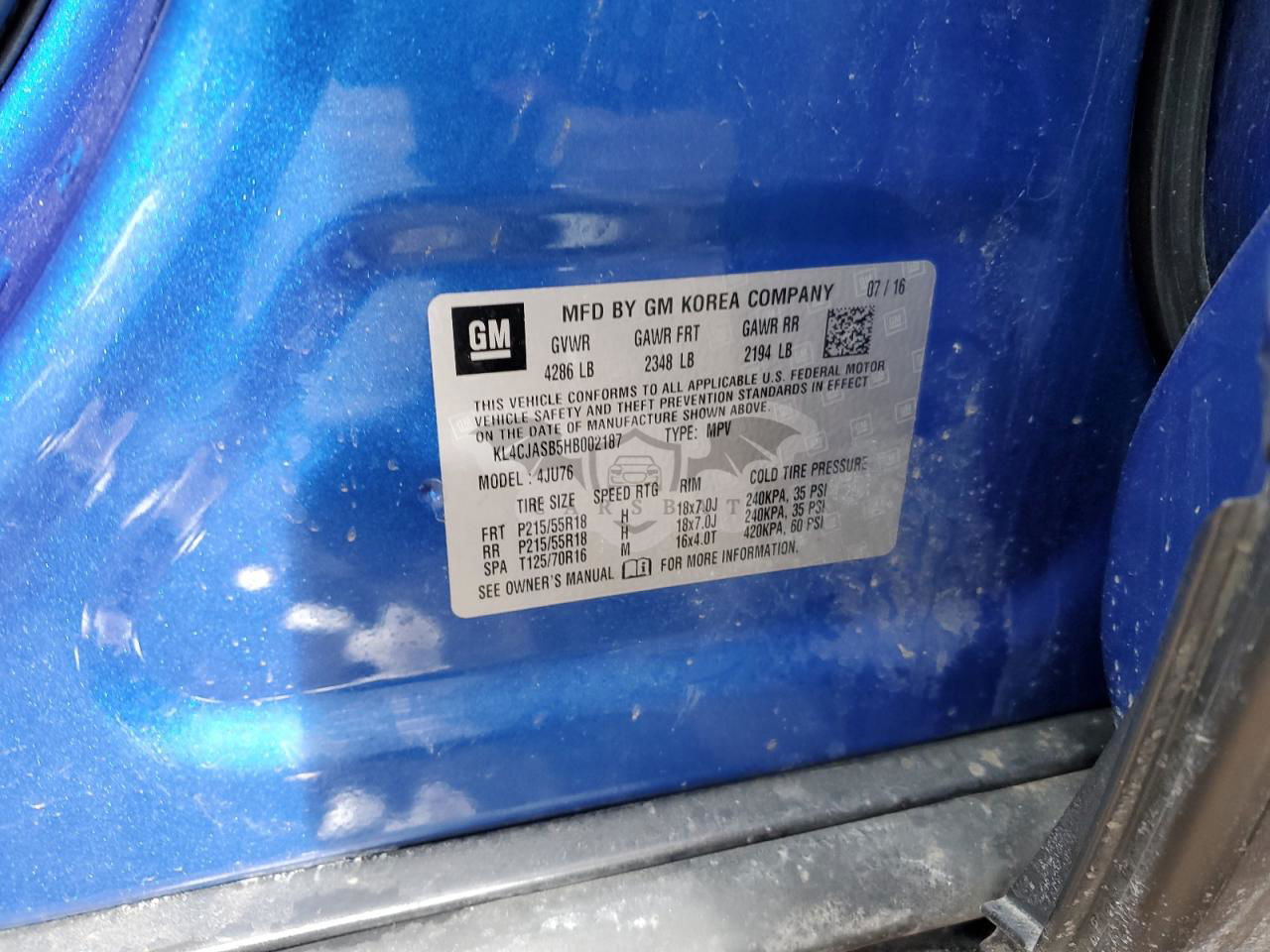 • VIN: KL4CJASB5HB002187