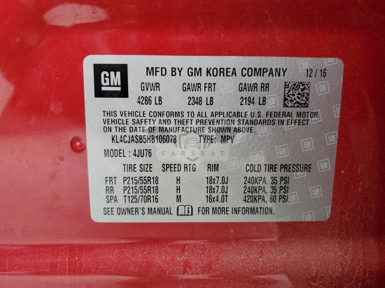• VIN: KL4CJASB5HB106078