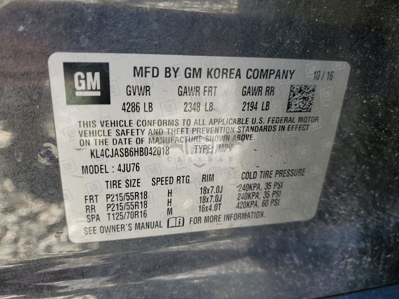 • VIN: KL4CJASB6HB042018